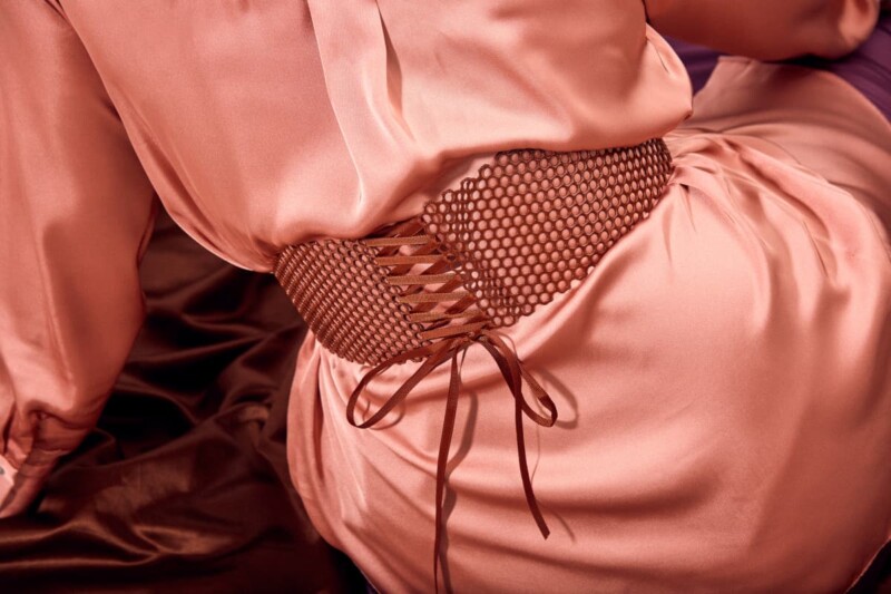 Classic curved Side Metal Mesh Corset with front hooks and back ribbon detail for closure. This corset was moulded from our classic round mesh. The perfect “cinch your waist” fashionable piece.