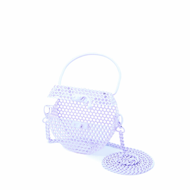 An aesthetic semi circle shaped bag casted from our hexagonal mesh.