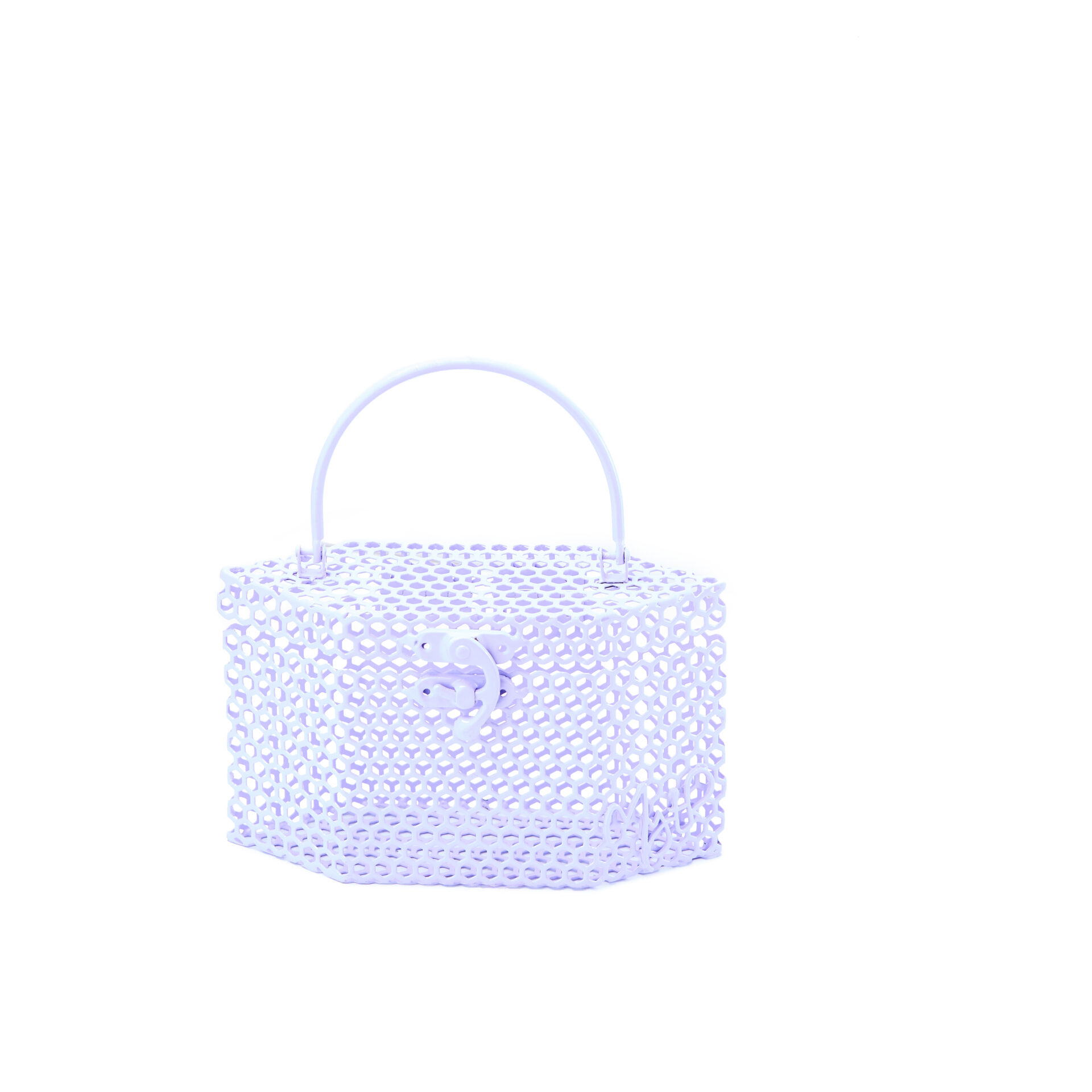 An artisanal hexagonal shaped bag modelled from our hexagonal mesh.